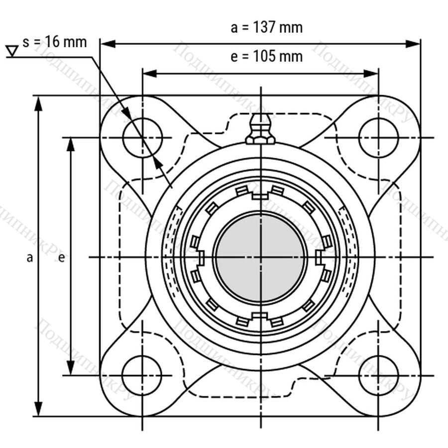 - Фланцевый подшипник с 4 отверстиями позволяет устанавливать его в различных условиях и подходит для очень высоких радиальных нагрузок