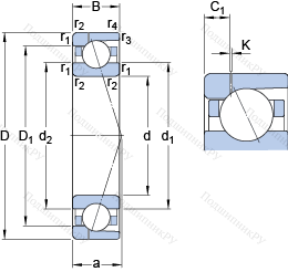 | Номинальная динамическая грузоподъёмность | C | 72.8 | kN | |